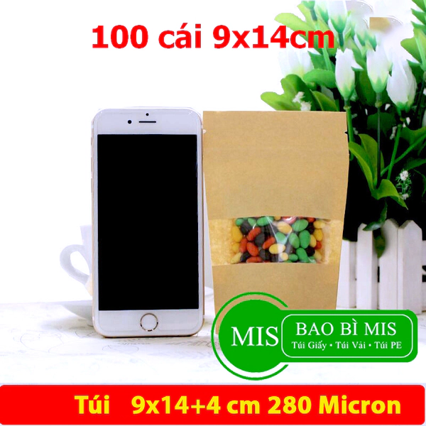 Túi zip giấy kraft một mặt kính