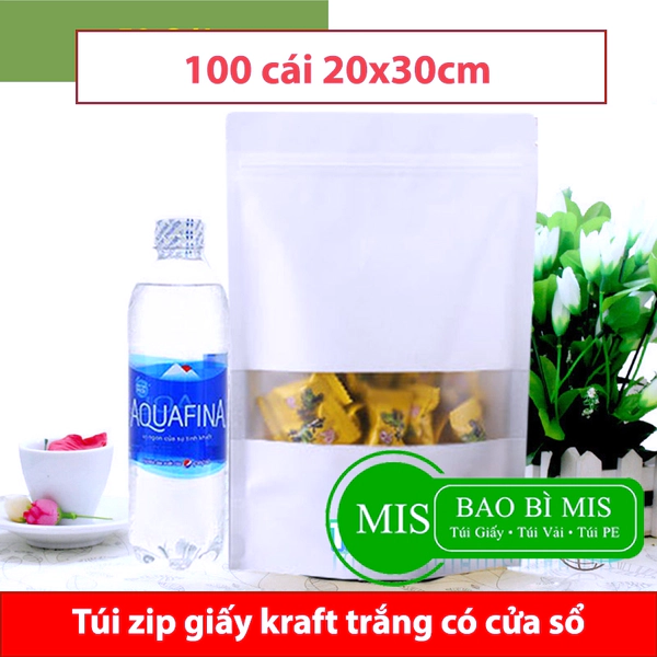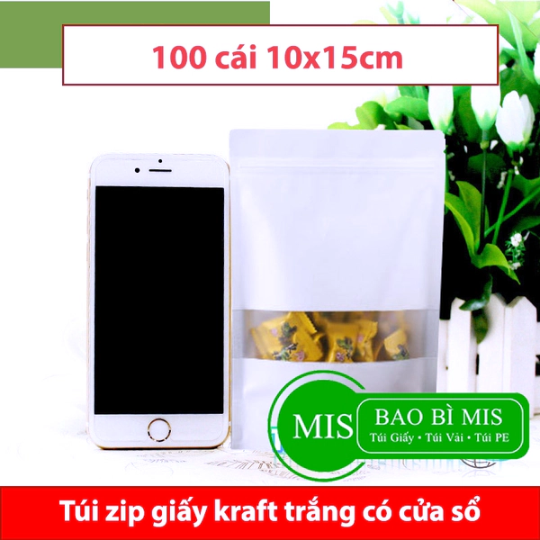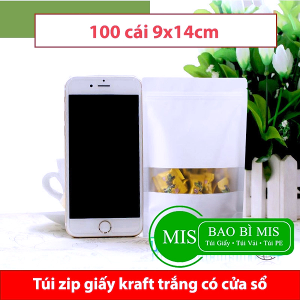 Túi zip giấy trắng cửa sổ